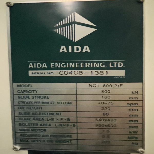 Được sản xuất tại AIDA Engineering Malaysia, AIDA NC1-E, máy dập khung C, có độ cứng cao và rất phù hợp với nhiều loại dập kim loại cơ bản.